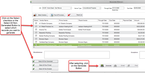 records by Job using the Generate Waivers.