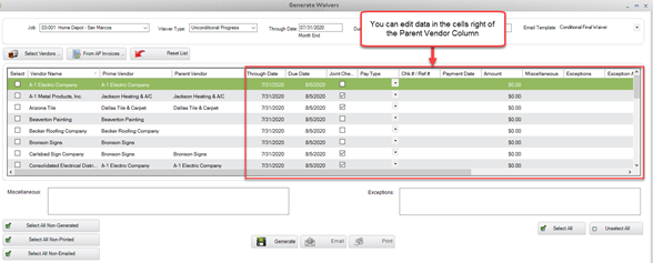 System, you can use the AP Invoice feature within the Generate Waivers Grid