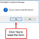 the wrong form, users can reset the Waiver Record by clicking on the Red X