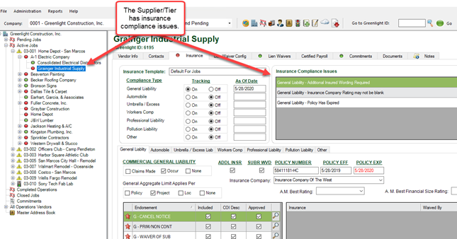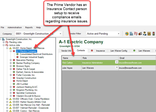 3) The users can now use Compliance/Lien Waiver Email Templates on the Supplier/Tier record if there are any issues or waivers that need to be sent. The template will pull over the Prime Contacts that has the corresponding Contact Role for the template.